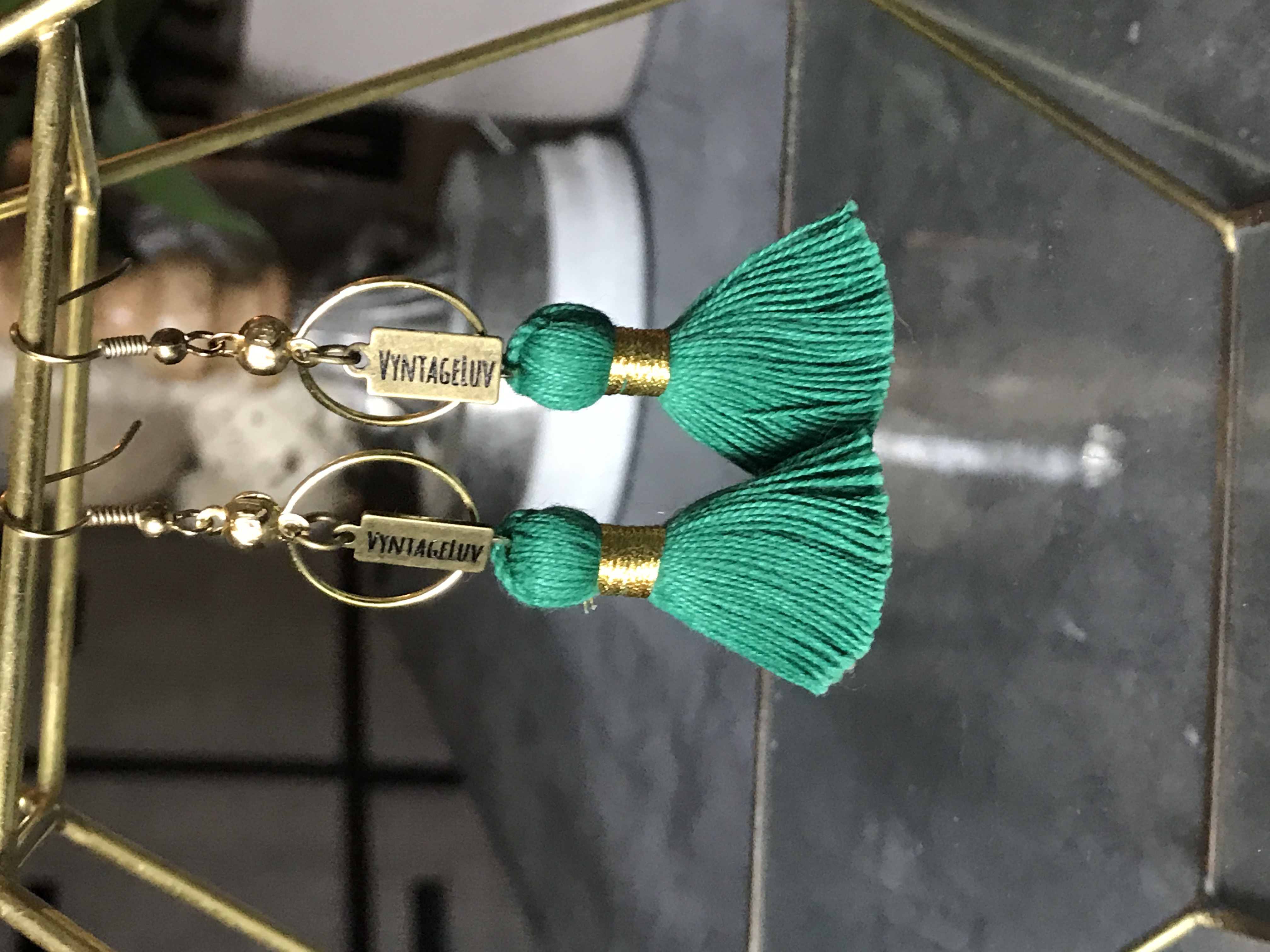 Mini Tassel earrings with classic VyntageLuv charms. Comes in a variety of colors. Light-weight and dainty piece.