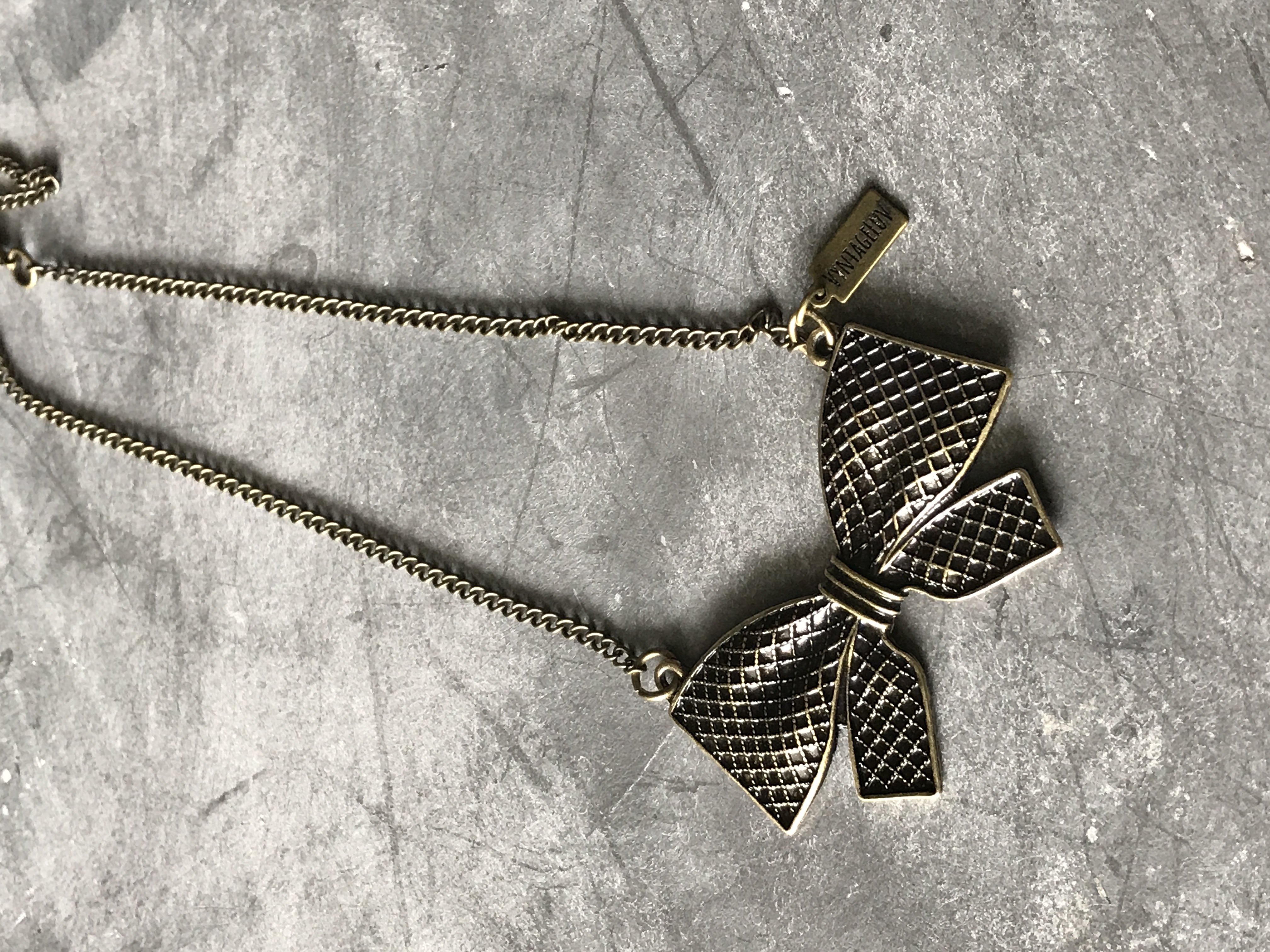 This dainty handmade piece was made with an antique gold metal pendant and chain. It is an adorable statement piece for your princess to model!