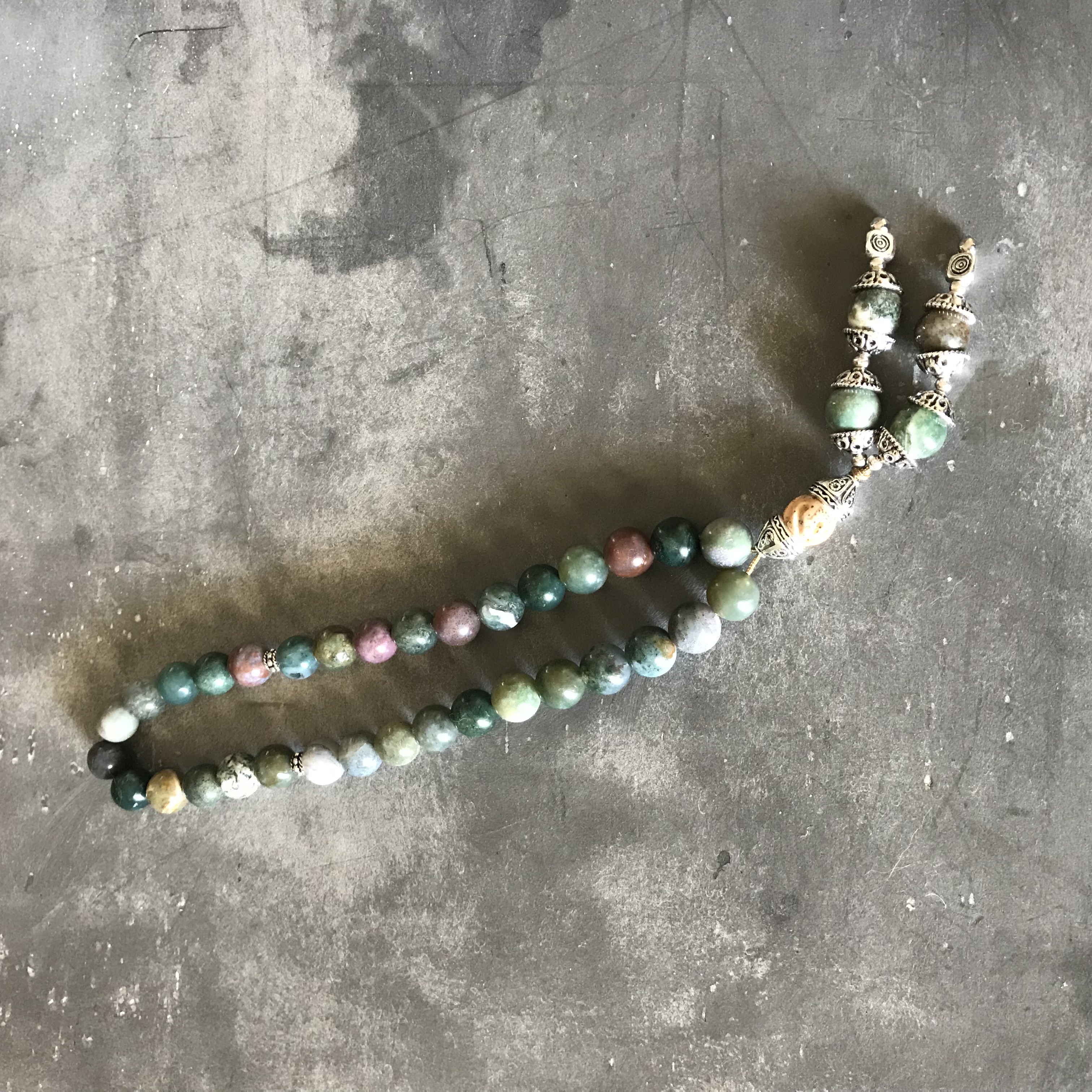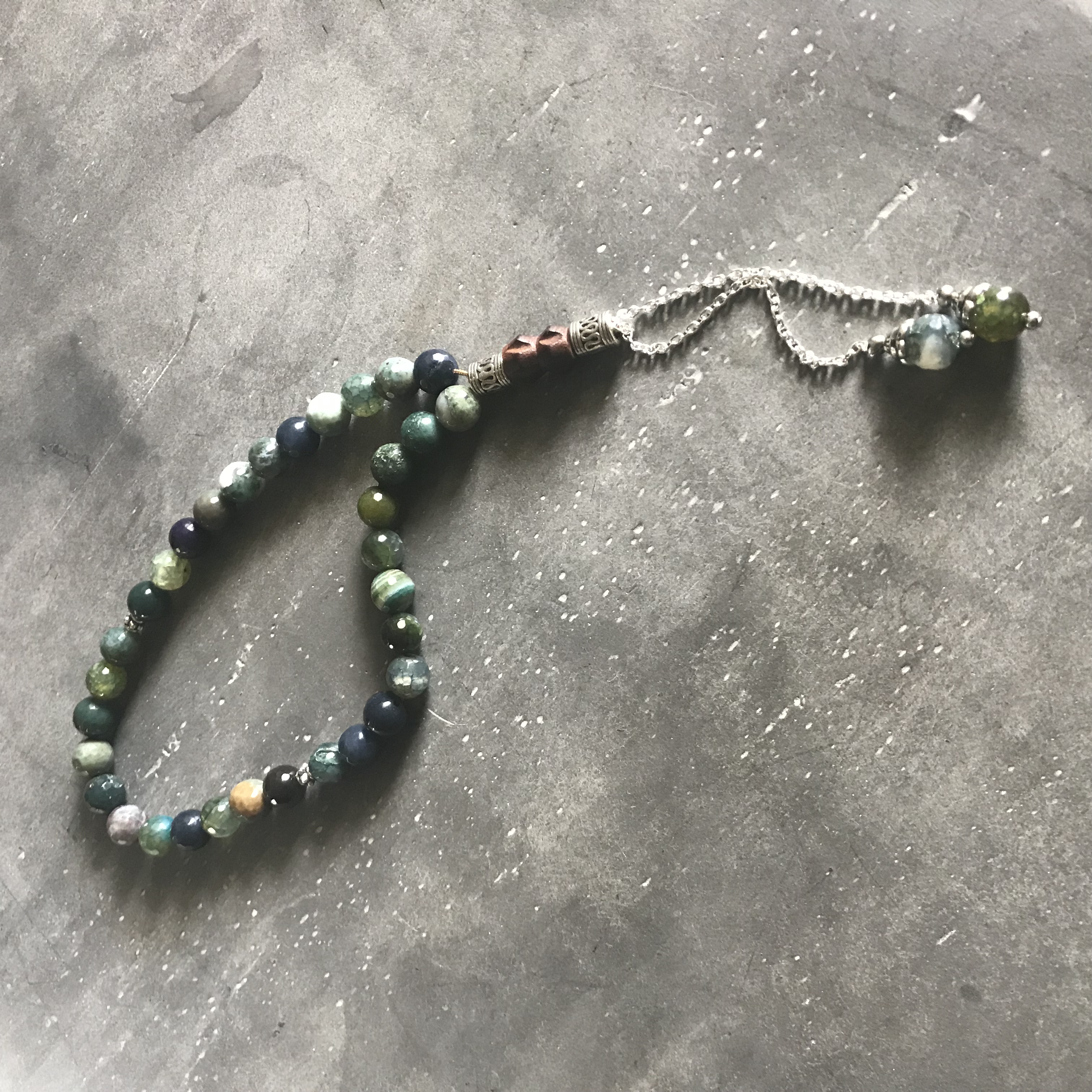 These Islamic Dhikr (prayer) Beads make the perfect gift! They are made with semiprecious stones and mixed metals. They are made to order. Please specify at checkout any color options and/or metal preferences.